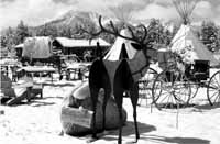 metal sculpture called Wapiti, by Bellevue resident Larry Meyers, surrounded by snow, may