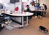 Perhaps dogs in the workplace serve as canaries do in