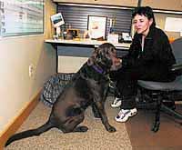 Peggy Hollitz brings her black lab, Sid (short for