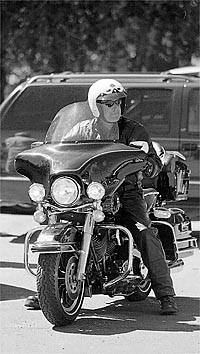 Gov. Dirk Kempthorne revs the motor on his new motorycycle following