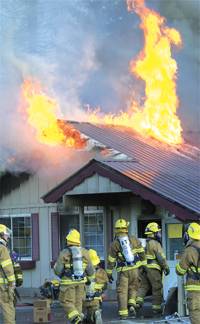 Department prepare to enter the burning structure at 271 Second Ave. North on