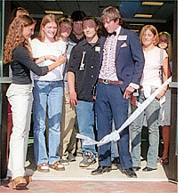 cuts the ribbon Thursday at the entrance of the new Wood River High School,