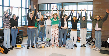 Wood River High School girls demonstrates how everyone’s midriff
